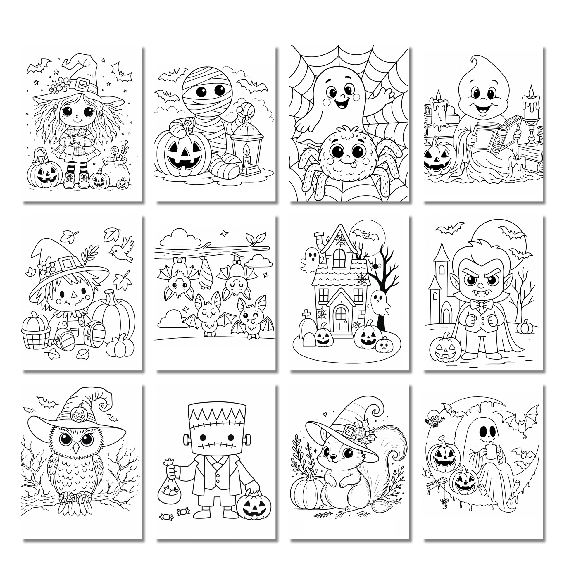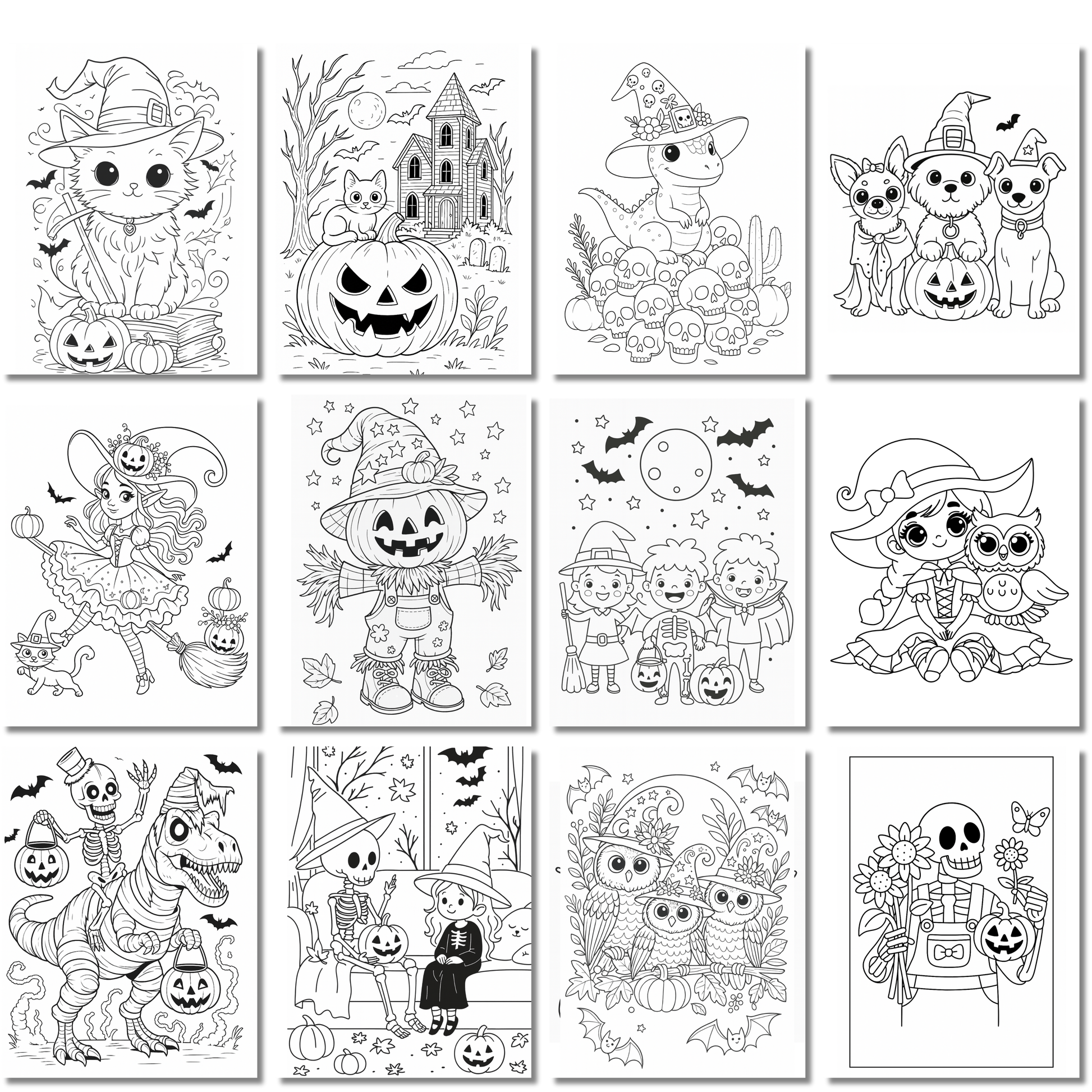 - 25 coloriages variĂ©s dâHalloween (sorciĂšres, citrouilles, fantĂŽmes, vampires, dinosaures, etc.)