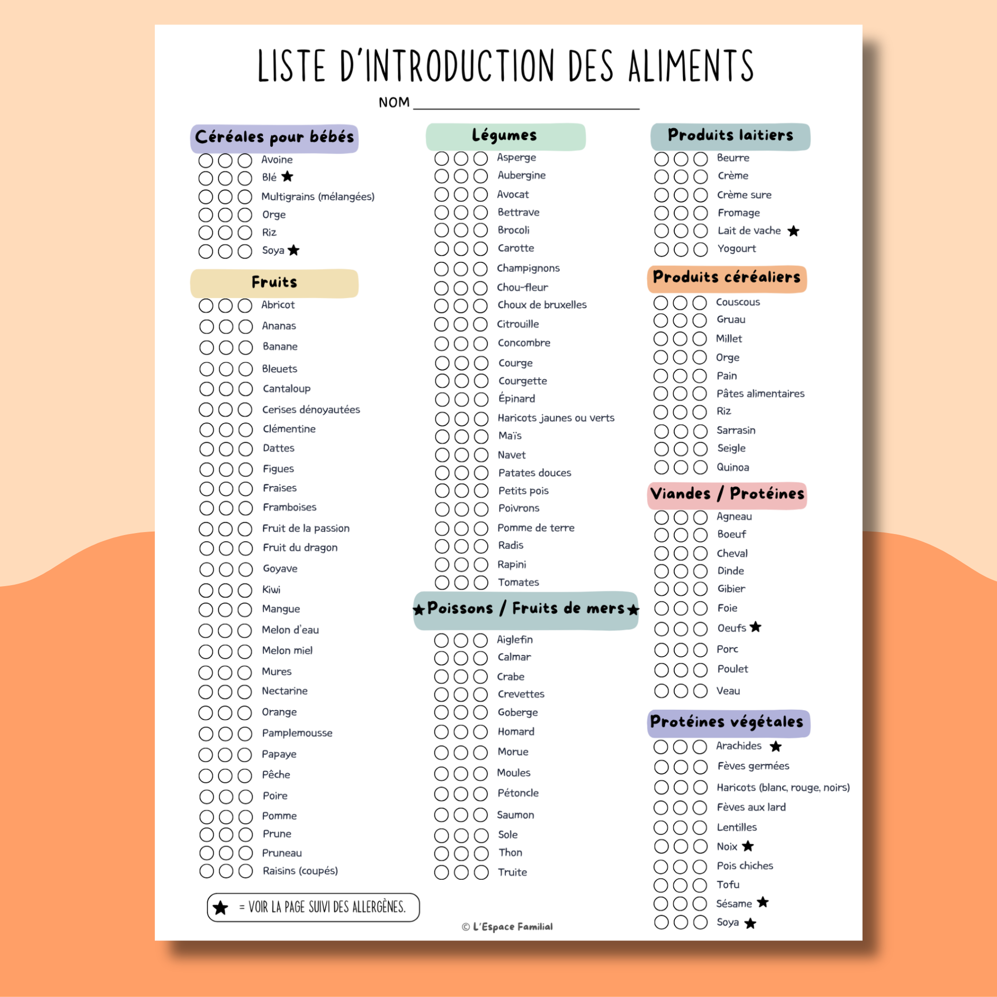 - 1 fiche de suivi des allergènes